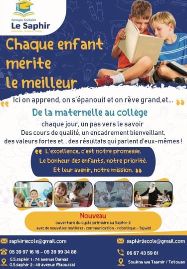 Parce qu’au Groupe Scolaire Le Saphir, chaque enfant mérite une éducation à la hauteur de ses ambitions.